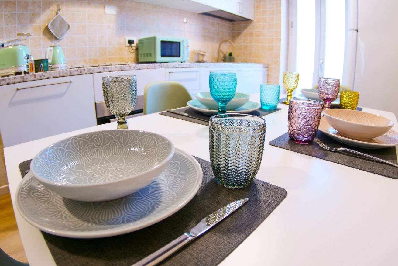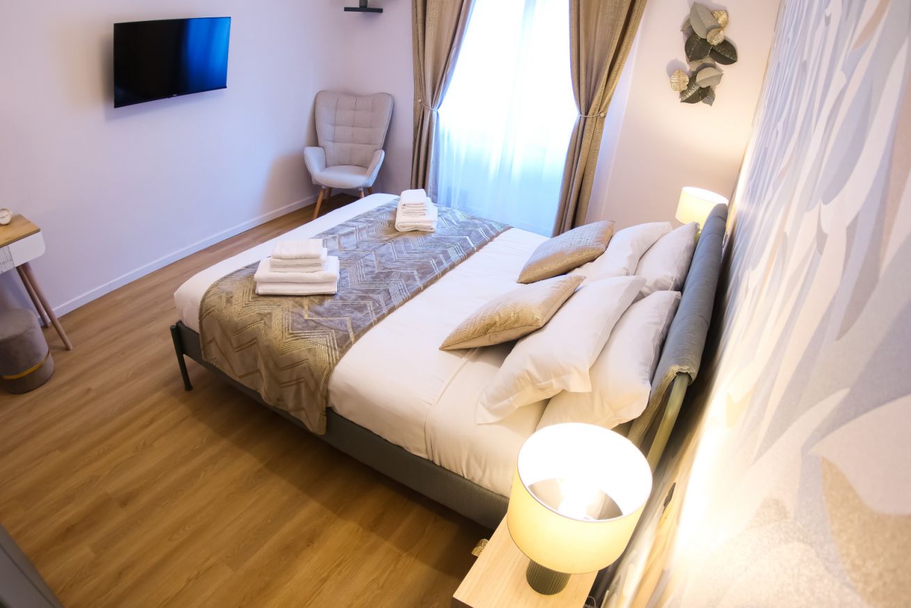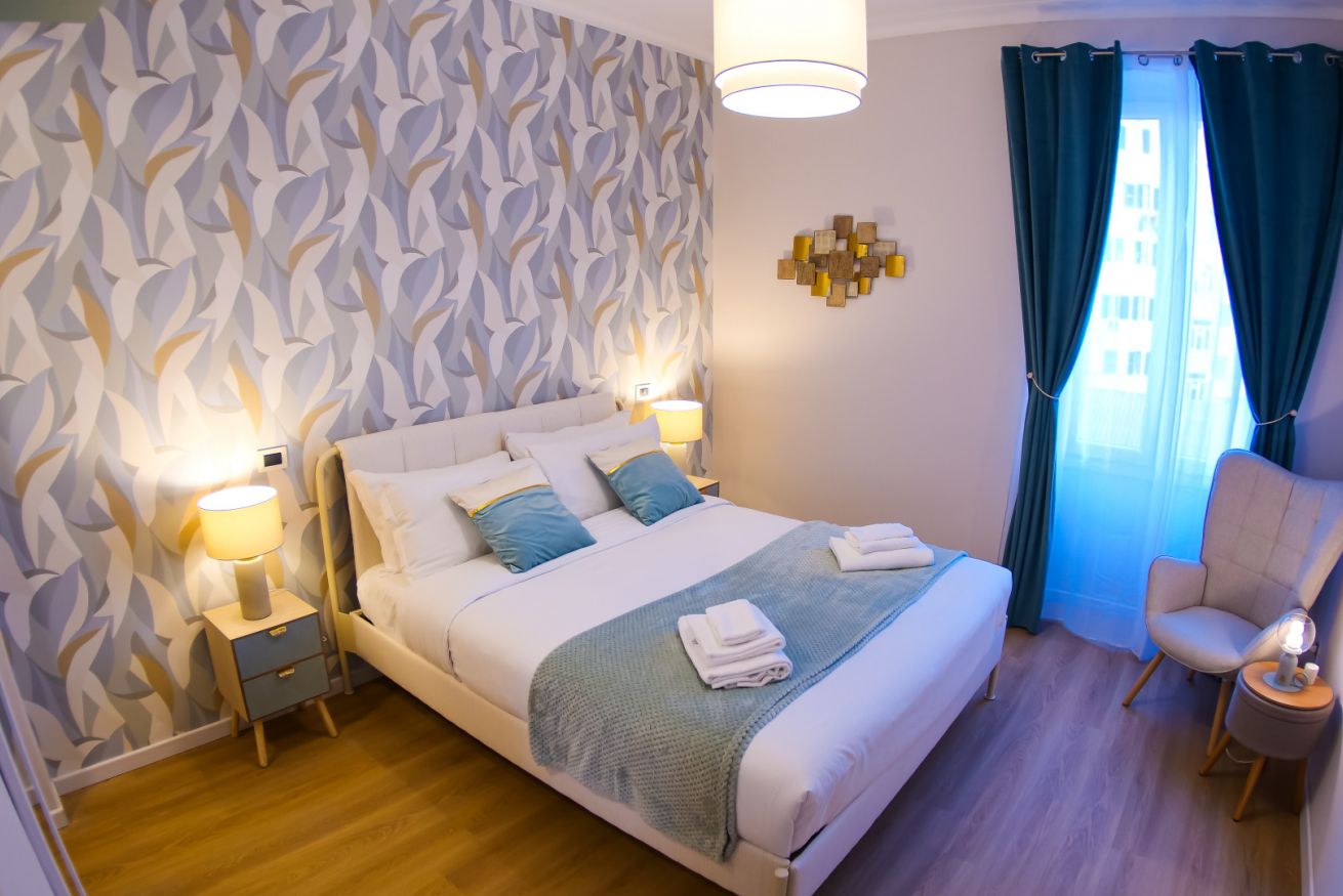 L'appartamento è completamente attrezzato e arredato per offrire il massimo comfort. Si compone di 2 ampie camere matrimoniali dotate di smart TV, armadio, poltrona e scrivania; un piccolo soggiorno con un divano letto singolo; una cucina completamente attrezzata con un tavolo da pranzo per 6 persone, un grande frigorifero con congelatore, lavastoviglie, microonde, forno elettrico, piano cottura a induzione, tostapane, bollitore, macchina del caffè Nespresso e tutto il necessario per un comodo soggiorno. E' presente anche un piccolo balcone con una lavasciuga. Il bagno è dotato di ampia doccia, bidet, asciugacapelli e set di cortesia. L'appartamento si trova al 3° piano di uno stabile dotato di ascensore, è provvisto di condizionatori in ogni stanza e il riscaldamento è centralizzato. L'appartamento è dotato di connessione internet ultraveloce e gratuita, cassaforte e domotica per il self check-in. All'arrivo i nostri ospiti troveranno compresa la fornitura della biancheria e gli asciugamani.