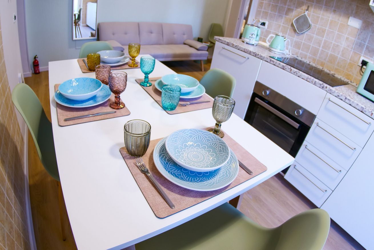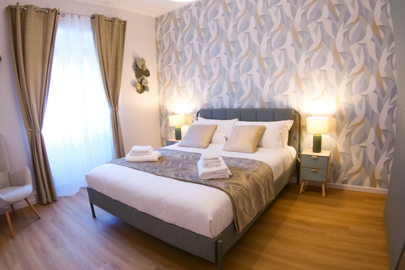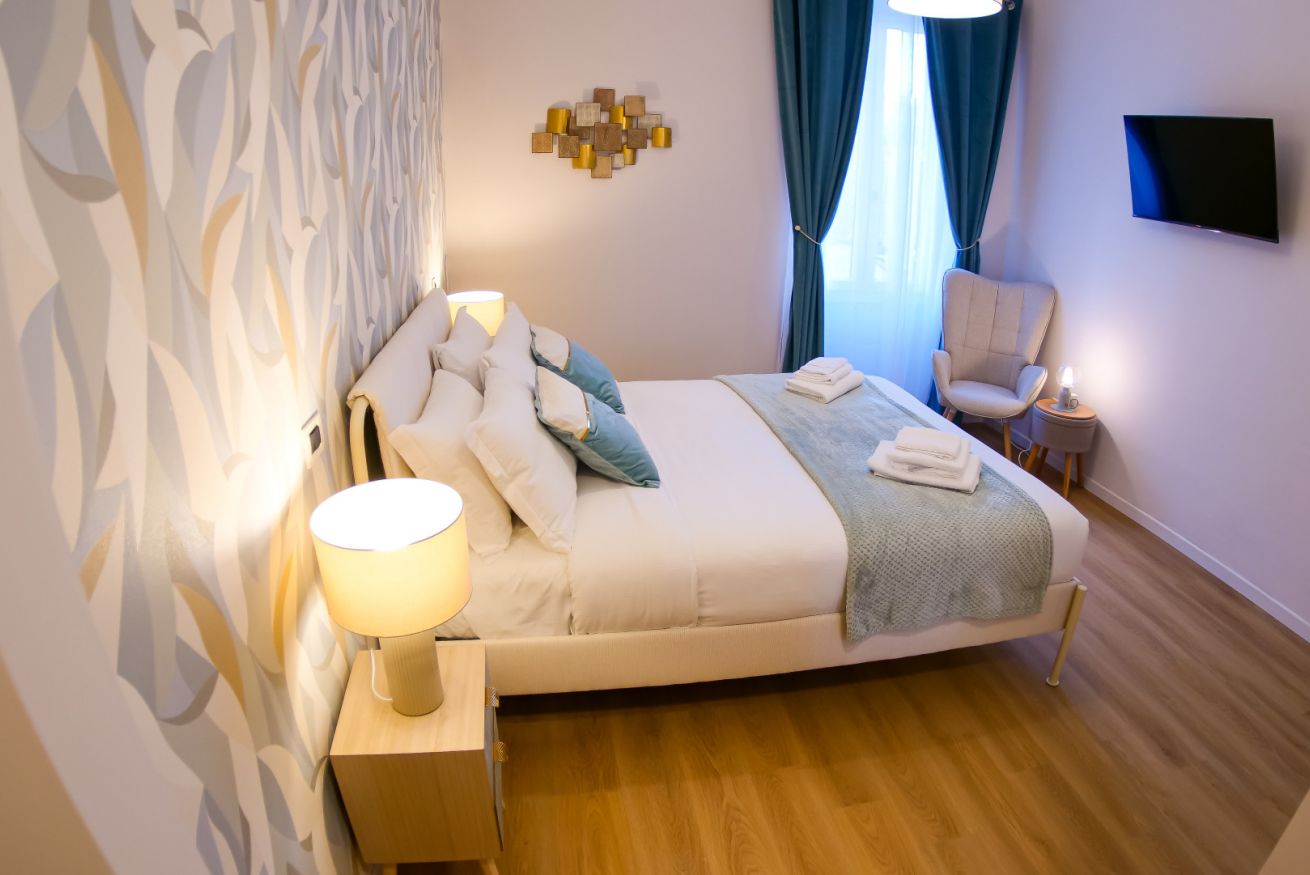 L'appartamento è completamente attrezzato e arredato per offrire il massimo comfort. Si compone di 2 ampie camere matrimoniali dotate di smart TV, armadio, poltrona e scrivania; un piccolo soggiorno con un divano letto singolo; una cucina completamente attrezzata con un tavolo da pranzo per 6 persone, un grande frigorifero con congelatore, lavastoviglie, microonde, forno elettrico, piano cottura a induzione, tostapane, bollitore, macchina del caffè Nespresso e tutto il necessario per un comodo soggiorno. E' presente anche un piccolo balcone con una lavasciuga. Il bagno è dotato di ampia doccia, bidet, asciugacapelli e set di cortesia. L'appartamento si trova al 3° piano di uno stabile dotato di ascensore, è provvisto di condizionatori in ogni stanza e il riscaldamento è centralizzato. L'appartamento è dotato di connessione internet ultraveloce e gratuita, cassaforte e domotica per il self check-in. All'arrivo i nostri ospiti troveranno compresa la fornitura della biancheria e gli asciugamani.